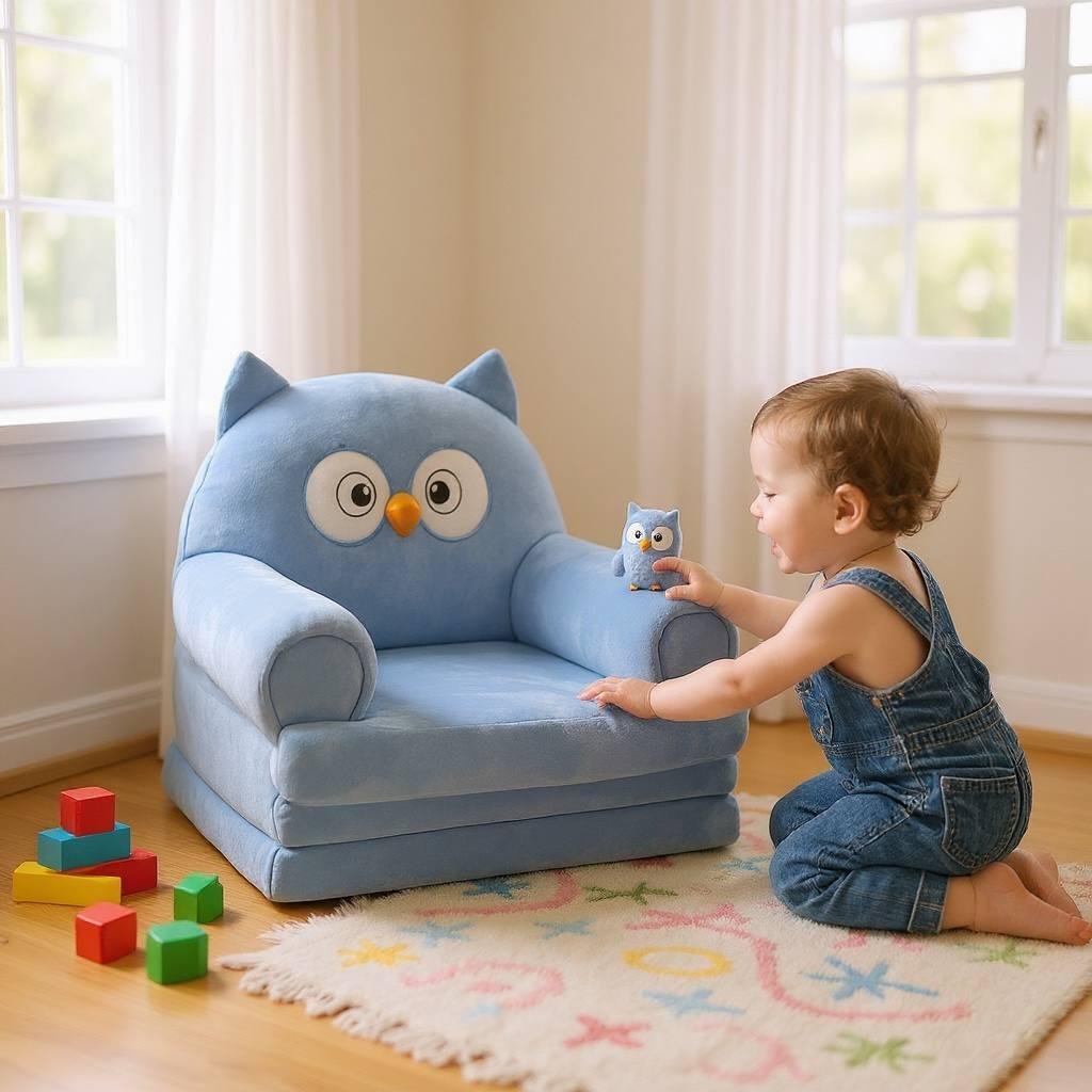 М’яке дитяче крісло у вигляді веселої сови стане улюбленим місцем відпочинку вашої дитини. Воно поєднує комфорт, практичність та яскравий дизайн, що створює затишну атмосферу в дитячій кімнаті.