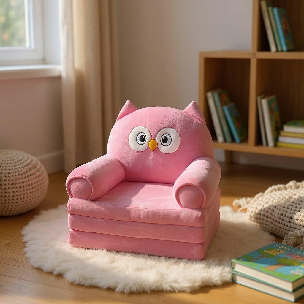 М’яке дитяче крісло у вигляді веселої сови стане улюбленим місцем відпочинку вашої дитини. Воно поєднує комфорт, практичність та яскравий дизайн, що створює затишну атмосферу в дитячій кімнаті.