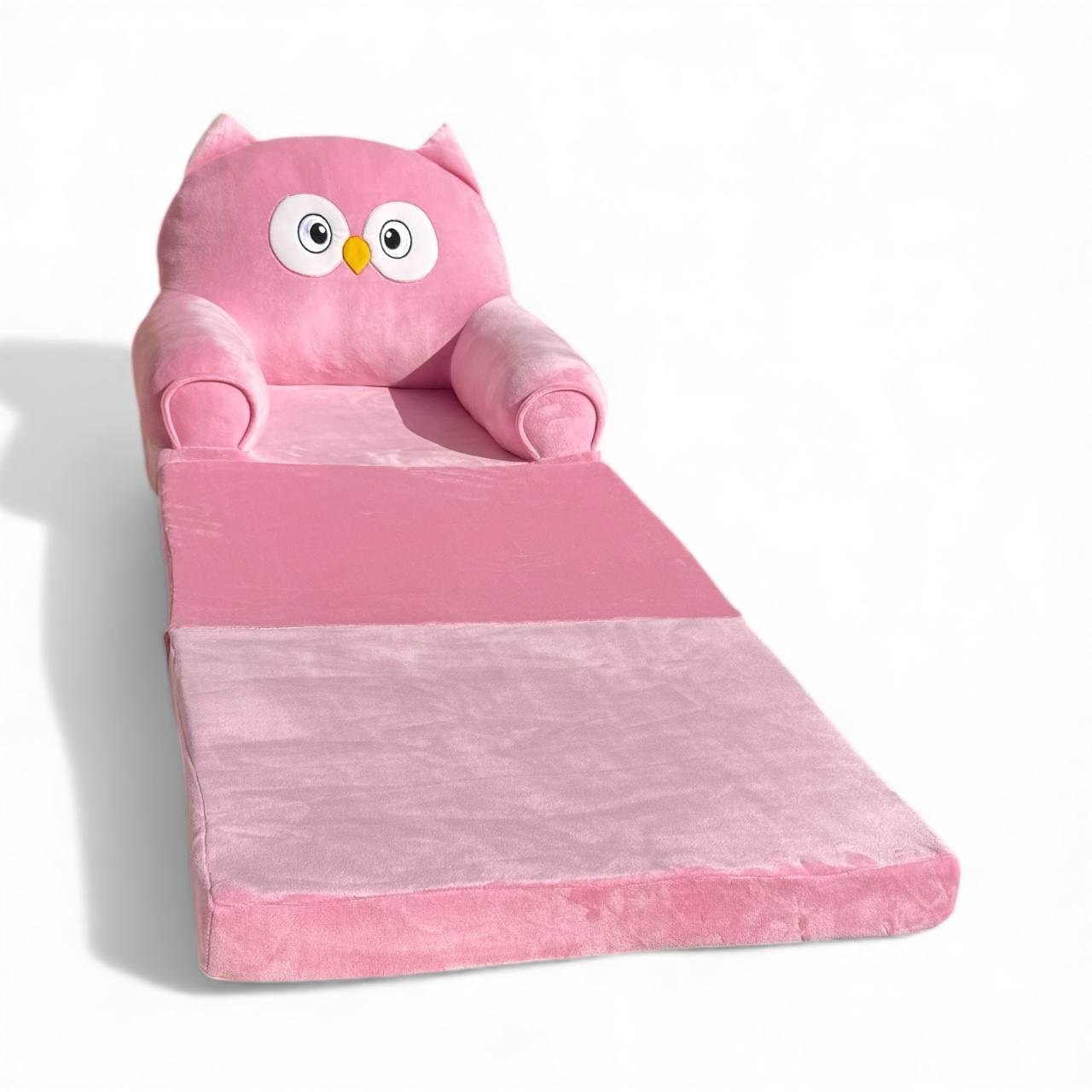 Крісло виготовлене з приємного на дотик плюшевого матеріалу, легко перетворюэться на м’який розкладний матрац. Завдяки м’якому наповнювачу воно безпечне для дітей і чудово підходить для ігор, перегляду мультфільмів чи читання книжок.