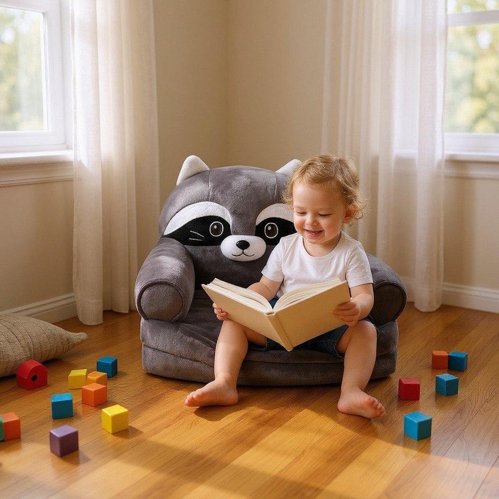 М’яке дитяче крісло у вигляді веселого єнотика стане улюбленим місцем відпочинку вашої дитини. Воно поєднує комфорт, практичність та яскравий дизайн, що створює затишну атмосферу в дитячій кімнаті.