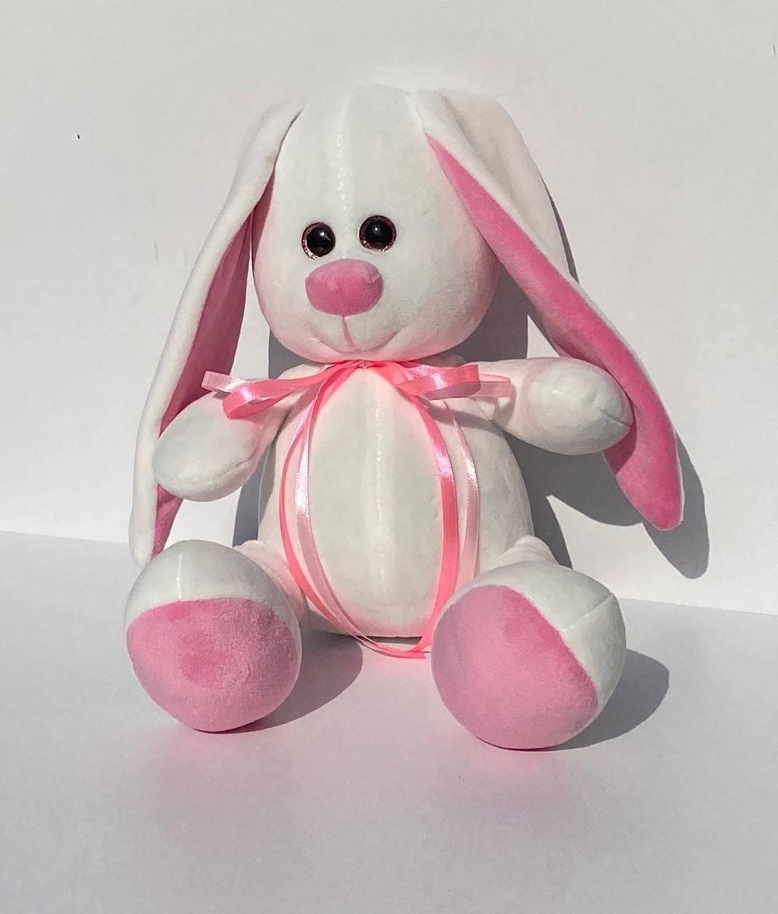 Цей чарівний м'який зайчик зроблений з високоякісних і безпечних матеріалів, він м'який і приємний на дотик. Доброзичливі оченята і мила мордочка роблять його дуже привабливим. Відмінний вибір для подарунка, як для дітей так і  для дорослих. Незалежно від віку ця іграшка стане гарним подарунком, і подарує безліч приємних емоцій. Розмір 33 см