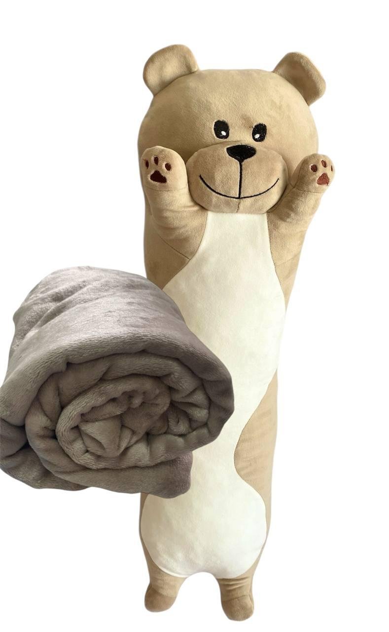 М'яка іграшка обнімашка створена, щоб дарувати найтепліші обійми, а плед, який ховається в середині, зігріє вас у холодний зимовий вечір, а також подарує неймовірний комфорт і спокійний сон. Вона стане відмінним доповненням для інтер'єру і додасть у ваш будинок атмосферу затишку, так само іграшку дуже зручно брати в поїздки завдяки компактному розміру. У зібраному стані іграшка представляє собою чарівного ведмедика, в середині якого захований плед. Ззаду є замок-блискавка. Сама іграшка може служити в якості подушки, адже вона м'яка і приємна на дотик. Ця іграшка-подушка дуже сподобається малюкам. Виріб доможе розважити дітей в дорогзі і забеспечить веселе дозвілля вдома. Іграшка виготовлена з якісних матеріалів. Ідеальний подарок як для дітей, так і для дорослих. Незалежно від віку ця іграшка стане відмінним подарунком і подарує багато приємних емоцій. Розмір 95 см