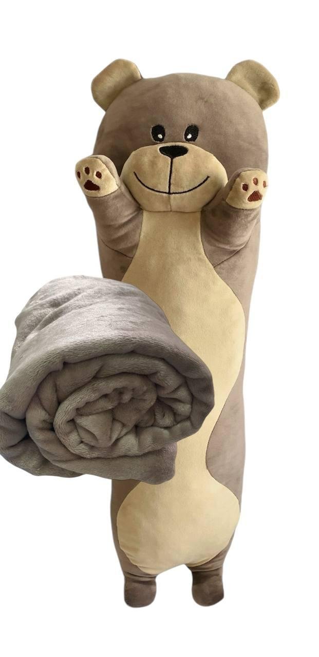 М’яка іграшка подушка обнімашка з пледом 3 в 1 ведмедик Батон темно бежевий 75 см М122/2