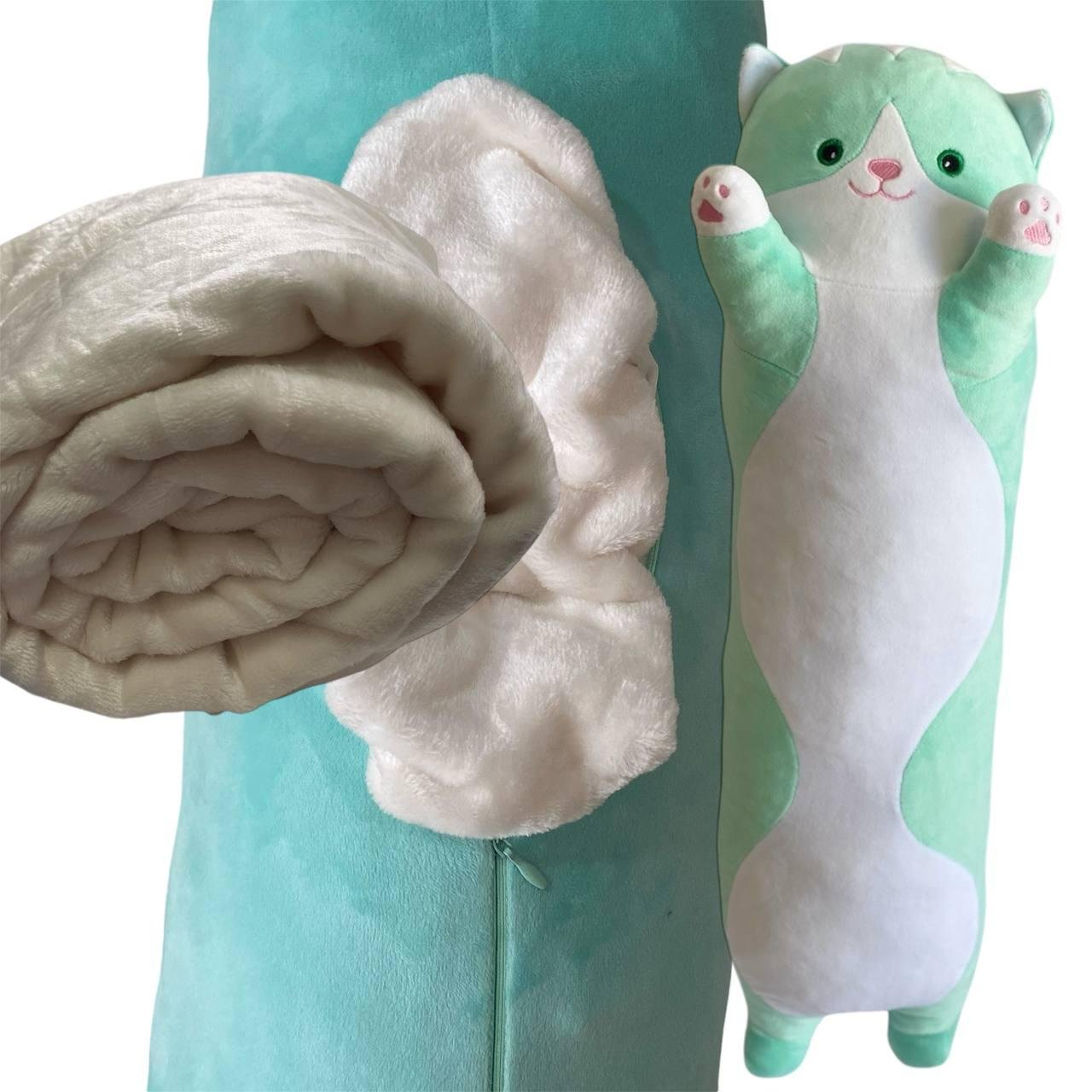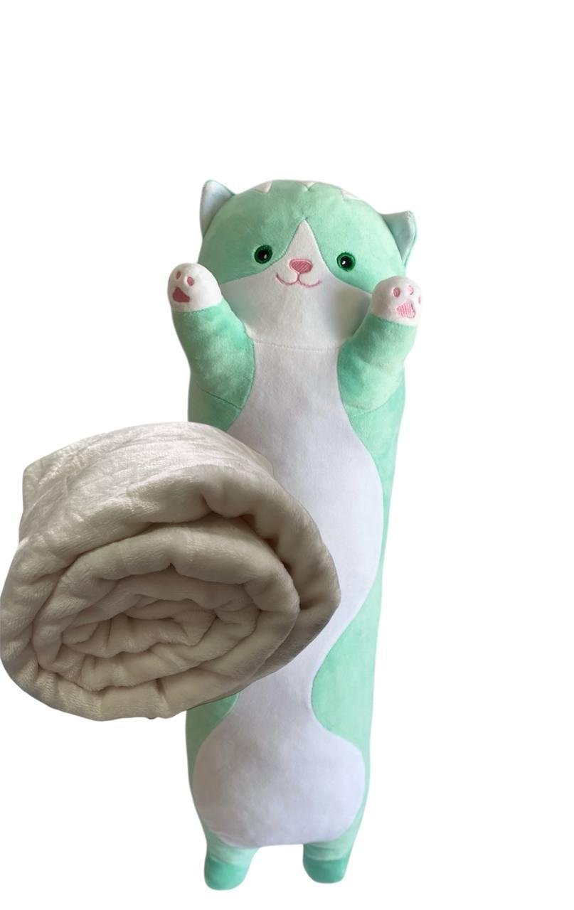 М’яка іграшка подушка обнімашка з пледом 3 в 1 котик Батон м’ятний 95 см М123/3