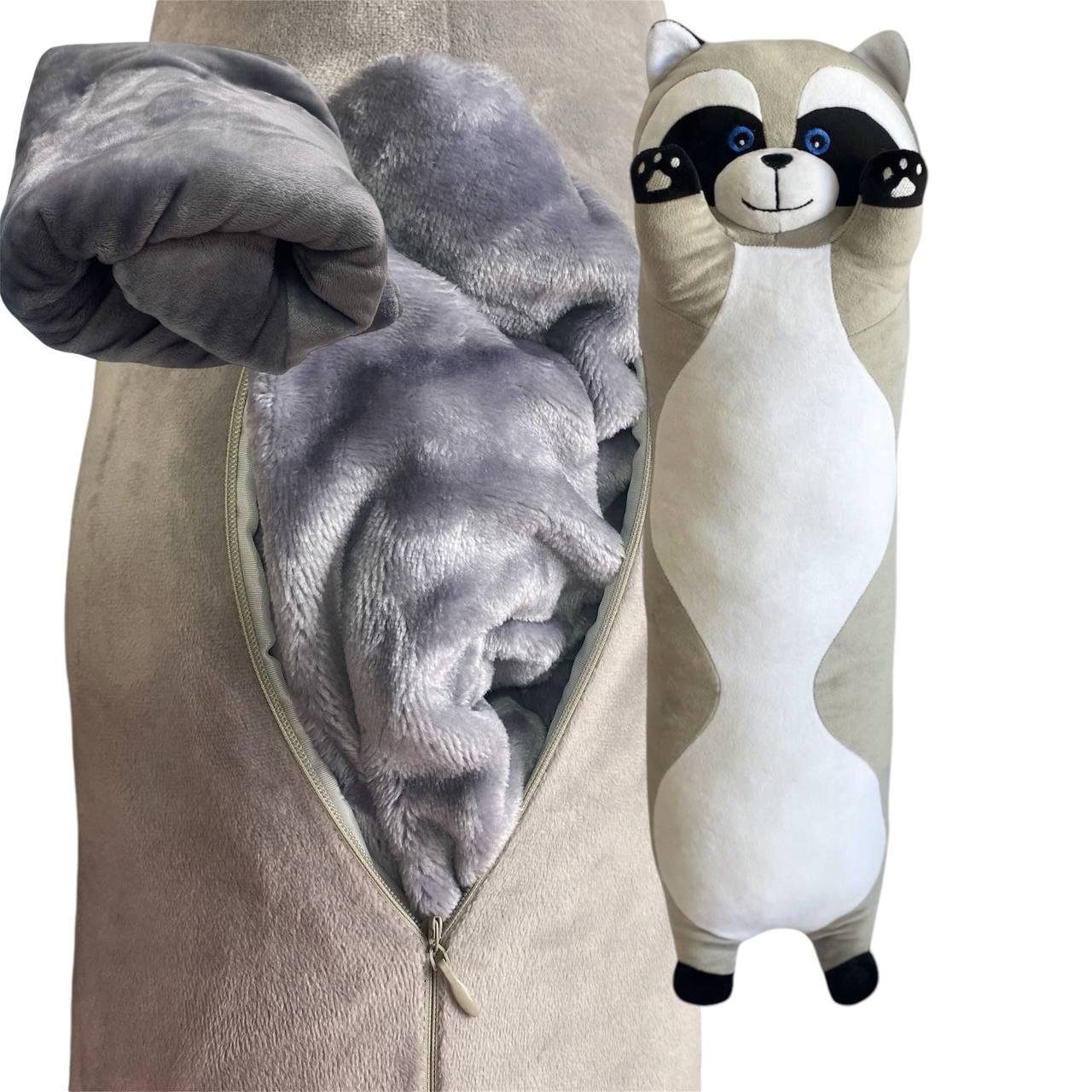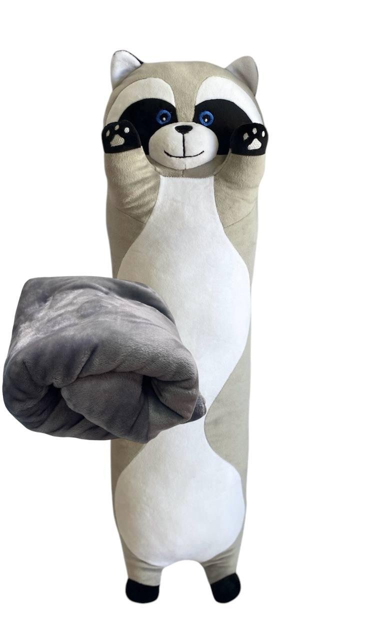 М’яка іграшка подушка обнімашка з пледом 3 в 1 єнот Батон світло сірий 95 см М119/3