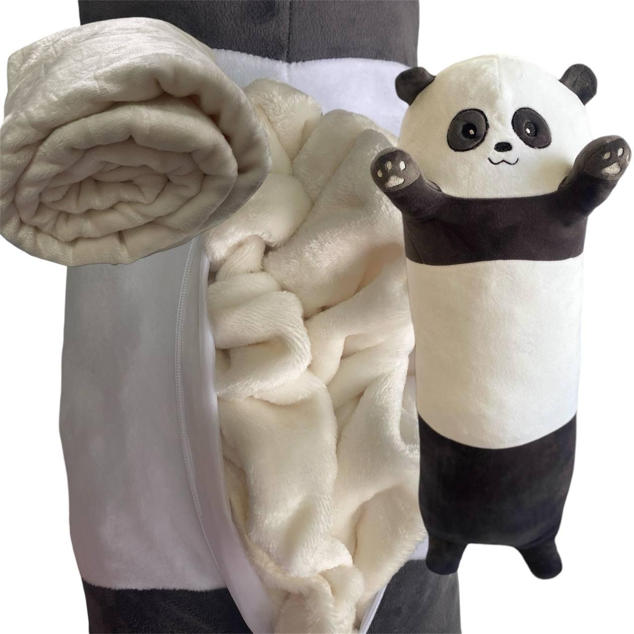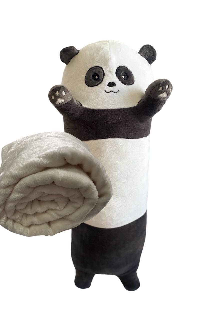 М'яка іграшка обнімашка створена, щоб дарувати найтепліші обійми, а плед, який ховається в середині, зігріє вас у холодний зимовий вечір, а також подарує неймовірний комфорт і спокійний сон. Вона стане відмінним доповненням для інтер'єру і додасть у ваш будинок атмосферу затишку, так само іграшку дуже зручно брати в поїздки завдяки компактному розміру. У зібраному стані іграшка представляє собою чарівну панду, в середині якої захований плед. Ззаду є замок-блискавка. Сама іграшка може служити в якості подушки, адже вона м'яка і приємна на дотик. Ця іграшка-подушка дуже сподобається малюкам. Виріб  доможе розважити дітей в дорогзі і забеспечить веселе дозвілля вдома. Іграшка виготовлена з якісних матеріалів. Ідеальний подарок як для дітей, так і для дорослих. Незалежно від віку ця іграшка стане відмінним подарунком і подарує багато приємних емоцій. Розмір 95 см