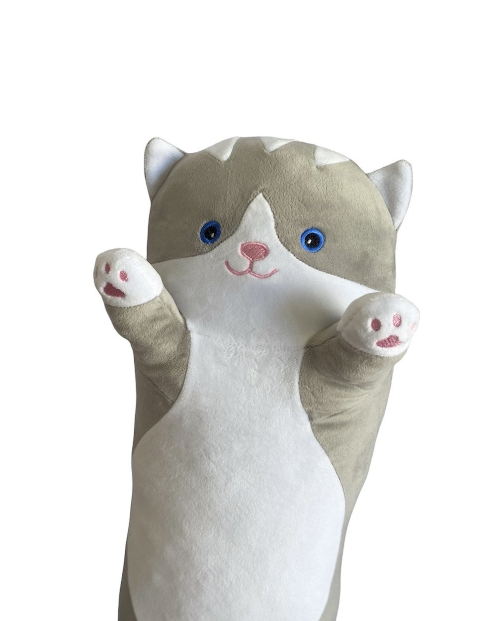 М’яка іграшка подушка обнімашка кіт Батон світло сірий 140 см М114/5