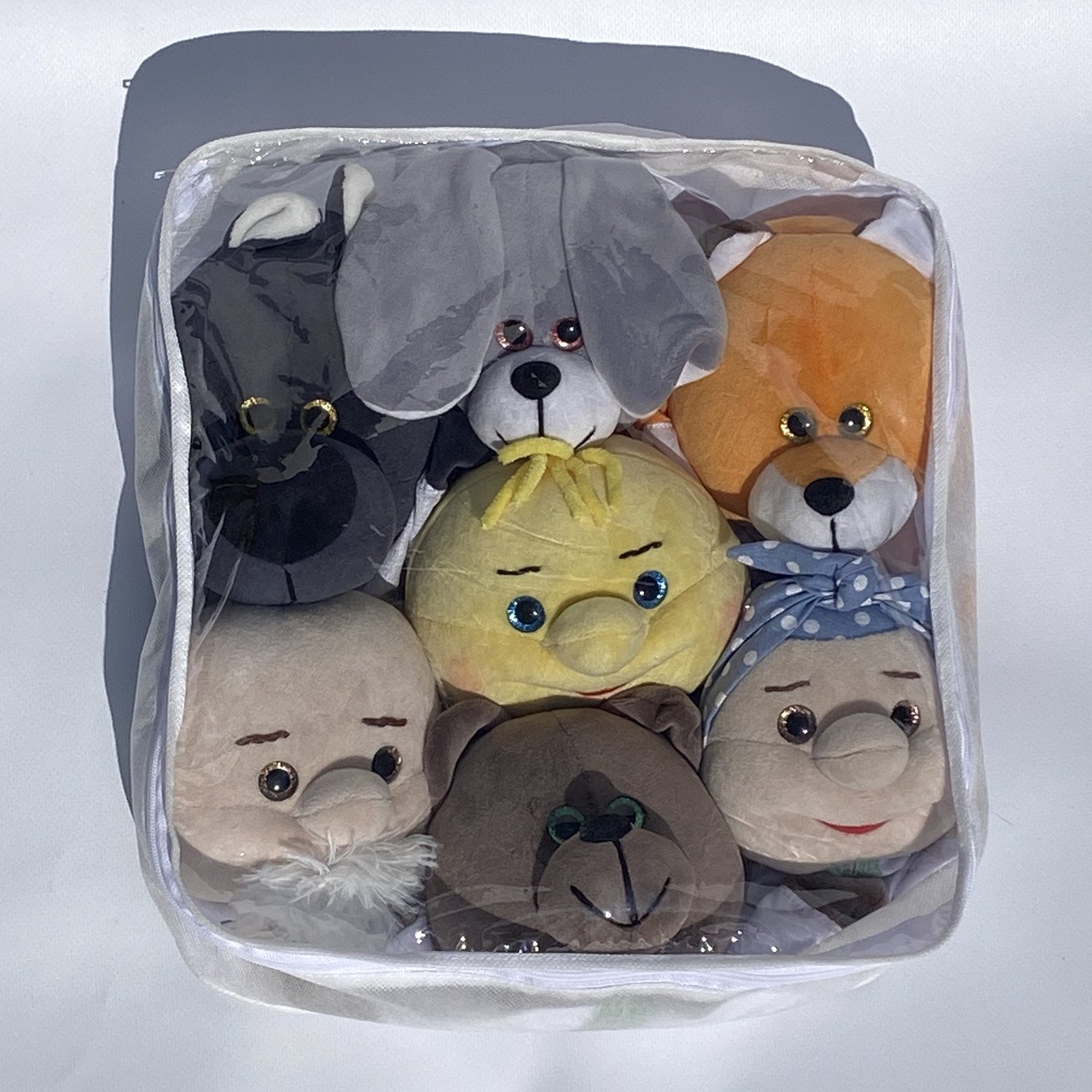 До набору входять ляльки: дід, баба, колодок, лисичка, вовк, зайчик і ведмідь. Кожна лялька має яскравий та зручний вигляд на руку як дорослого, так і дитини, що дасть змогу легко керувати імітацією рухів ляльок.