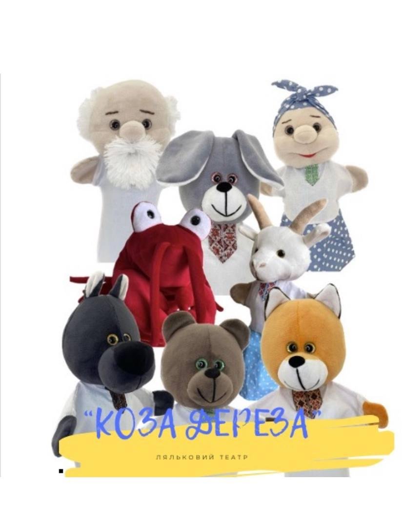 До набору входять ляльки: дід, баба, лисичка, вовк, зайчик, коза, рак та ведмідь. Кожна лялька має яскравий вигляд та зручно одягається на руку як дорослого, так і дитини, що дасть змогу легко керувати імітацією рухів ляльок.